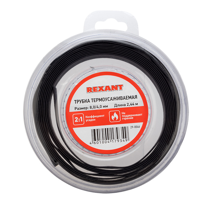 Трубка термоусаживаемая ТУТ нг 8,0/4,0мм, черная, ролик 2,44м REXANT