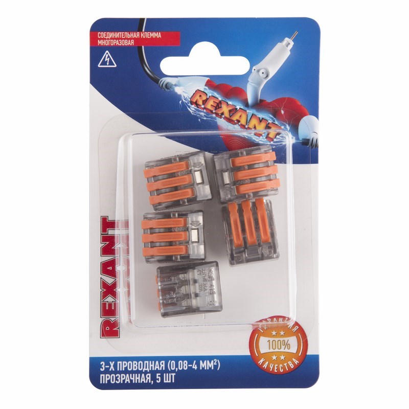Соединительная многоразовая клемма на 3 проводника с плоско-пружинным зажимом предназначена для подсоединения медных одножильных и многожильных проводников тонкого сечения. Клемма изготовлена из полиамида 66, имеет 3 контакта, цвет корпуса прозрачный, напряжение 400 В.