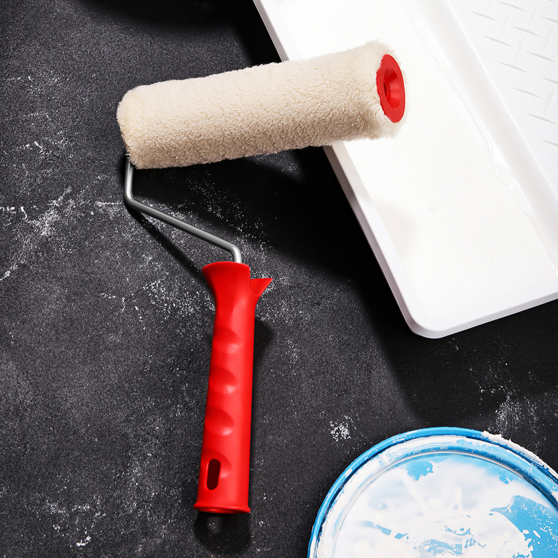 Валик состоит из пластмассового цилиндра, мягкой шубки, бугеля (изогнутого металлического стержня) и удобной пластиковой рукоятки.