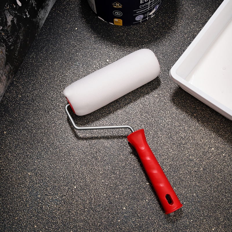 Валик состоит из пластмассового цилиндра, мягкой шубки, бугеля (изогнутого металлического стержня) и удобной пластиковой рукоятки.