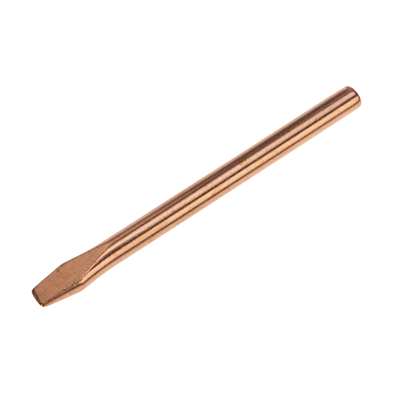 Жало медное представляет собой цилиндрический стержень, имеющий с одного конца один из множества типов форм. Медь — это идеальный материал для изготовления паяльного жала с точки зрения теплопроводности. Кроме этого, медное жало имеет отличную теплоемкость. Подавляющее большинство паяльников комплектуются именно такими наконечниками.