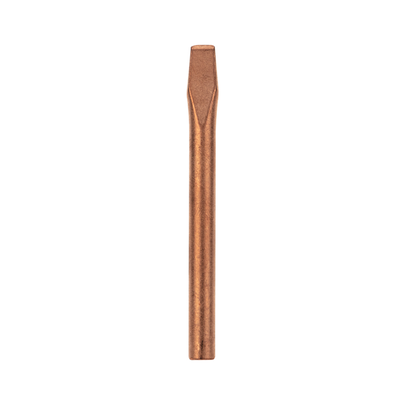 Жало медное представляет собой цилиндрический стержень, имеющий с одного конца один из множества типов форм. Медь — это идеальный материал для изготовления паяльного жала с точки зрения теплопроводности. Кроме этого, медное жало имеет отличную теплоемкость. Подавляющее большинство паяльников комплектуются именно такими наконечниками.