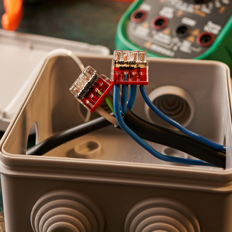 Электромонтажные экспресс-клемы WAGO 2273-204 позволят безопасно и быстро соединить 4 провода между собой (алюминиевые и медные как одножильные, так и многожильные). Достаточно просто вставить жилу кабеля или провода в клемму и самозажимной контакт надежно зафиксирует соединение. Диаметр соединяемых проводов должен составлять в сечении от 0,5 до 2,5 мм2. Номинальный ток 24А; Номинальное напряжение 450В. Удобные тестовые гнезда, прозрачный корпус для визуального контроля и смотровое окно для проверки защиты от касаний делают работу более безопасной.
