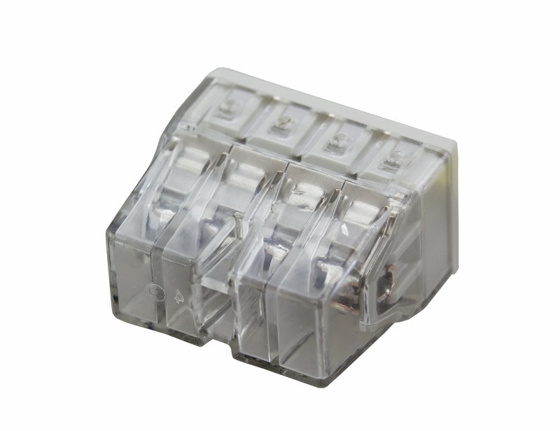 Клеммы предназначены для соединения для подключения одножильных/многожильных медных проводников (до 3-го класса гибкости). Сечение соединяемых одножильных проводов 0.5-2.5 мм², с помощью плоско-пружинного зажима.