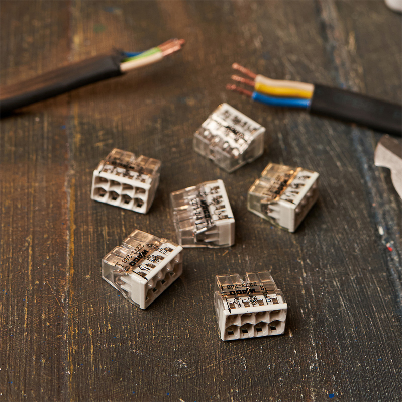 Электромонтажные экспресс-клемы WAGO 2273-248 позволят безопасно и быстро соединить 8 проводов между собой (алюминиевые и медные как одножильные, так и многожильные). Достаточно просто вставить жилу кабеля или провода в клемму и самозажимной контакт надежно зафиксирует соединение. Диаметр соединяемых проводов должен составлять в сечении от 0,5 до 2,5 мм2. Номинальный ток 24А; Номинальное напряжение 450В. Удобные тестовые гнезда, прозрачный корпус для визуального контроля и смотровое окно для проверки защиты от касаний делают работу более безопасной. Наличие пасты обеспечивает надёжную изоляцию контакта