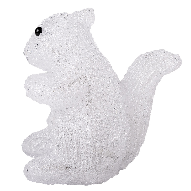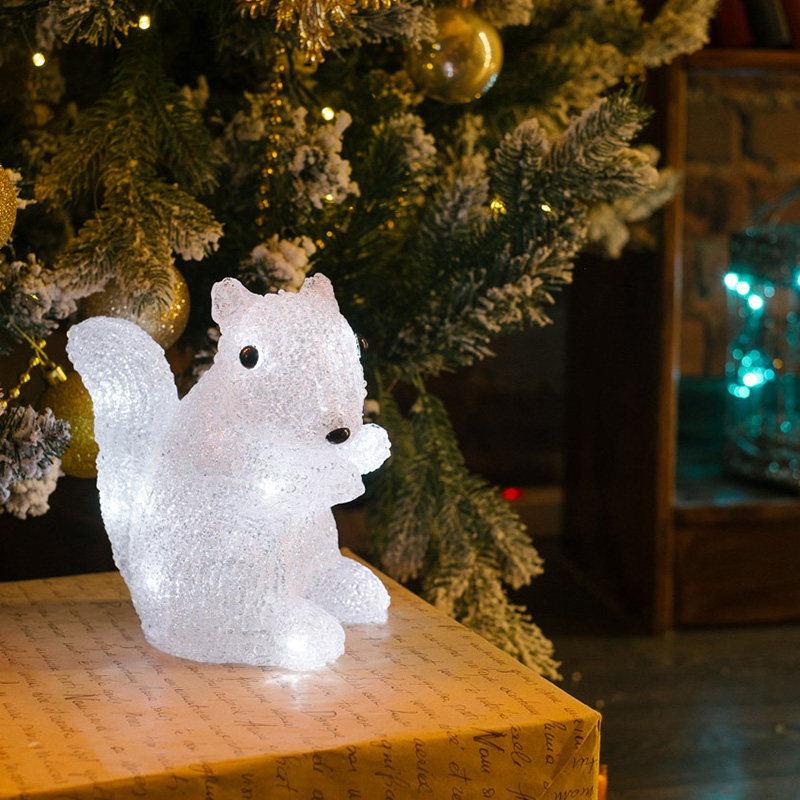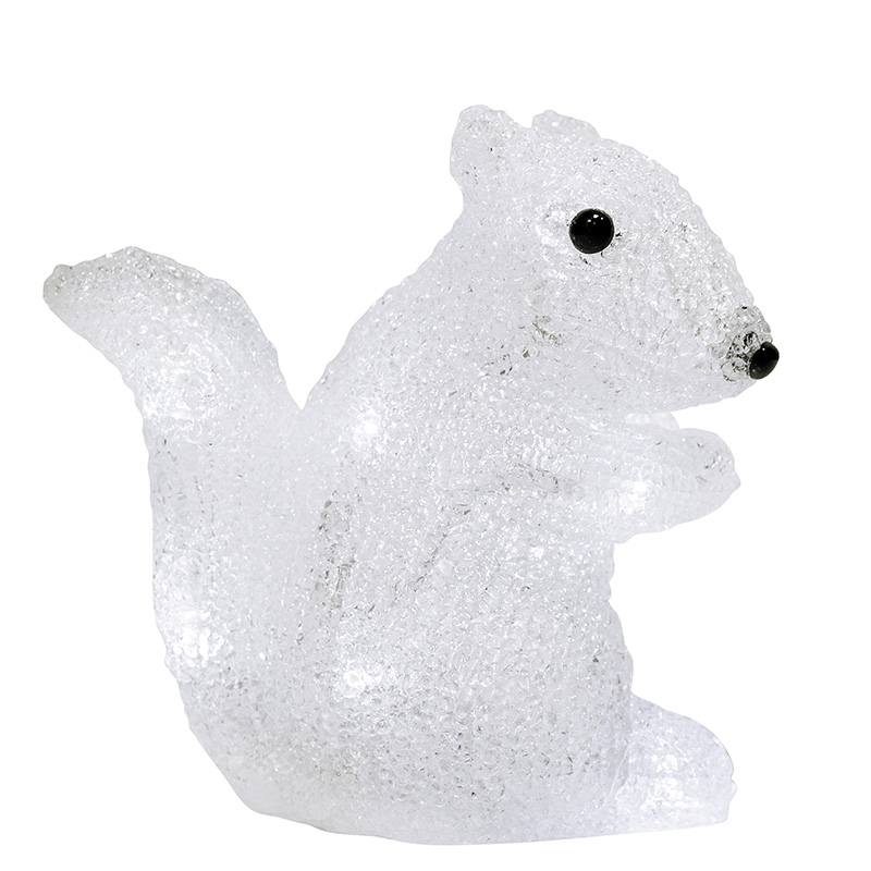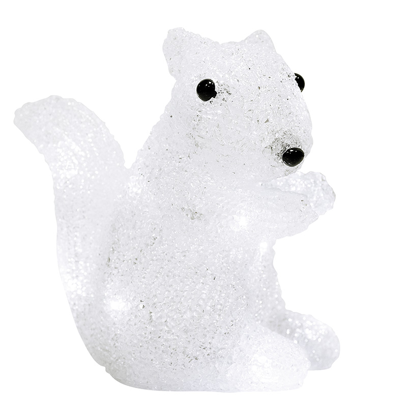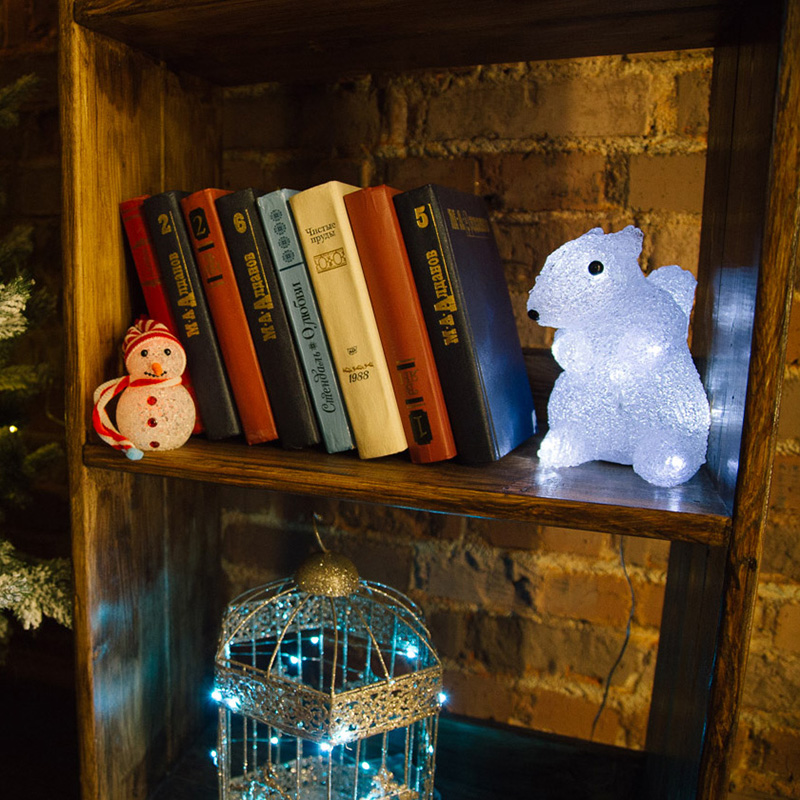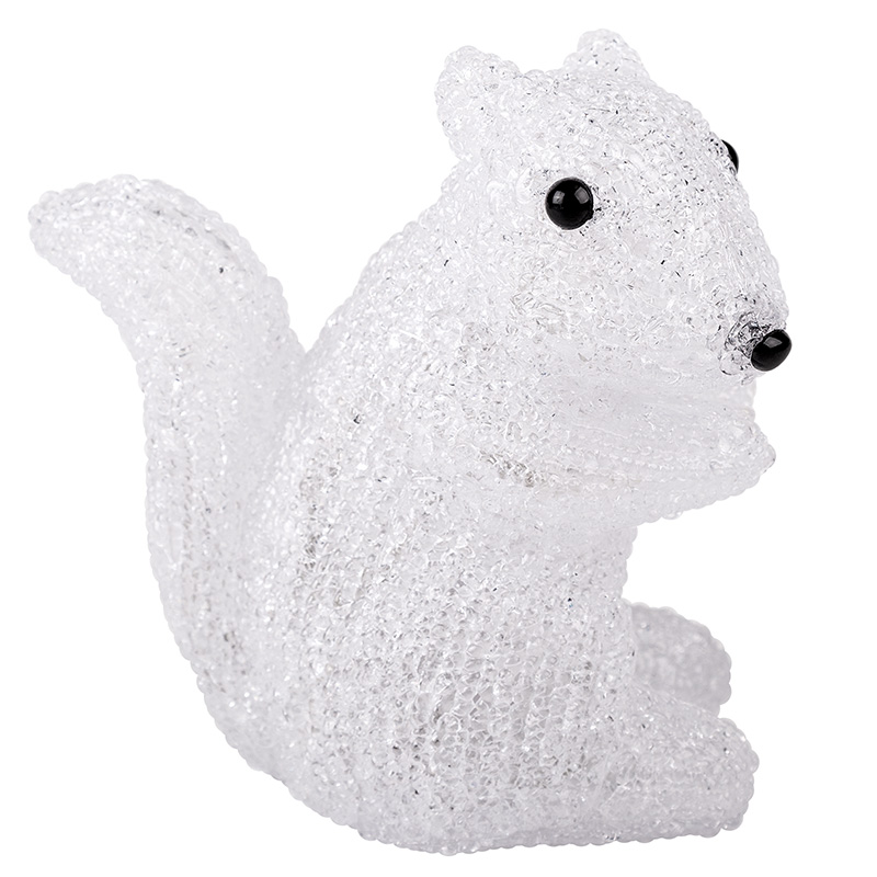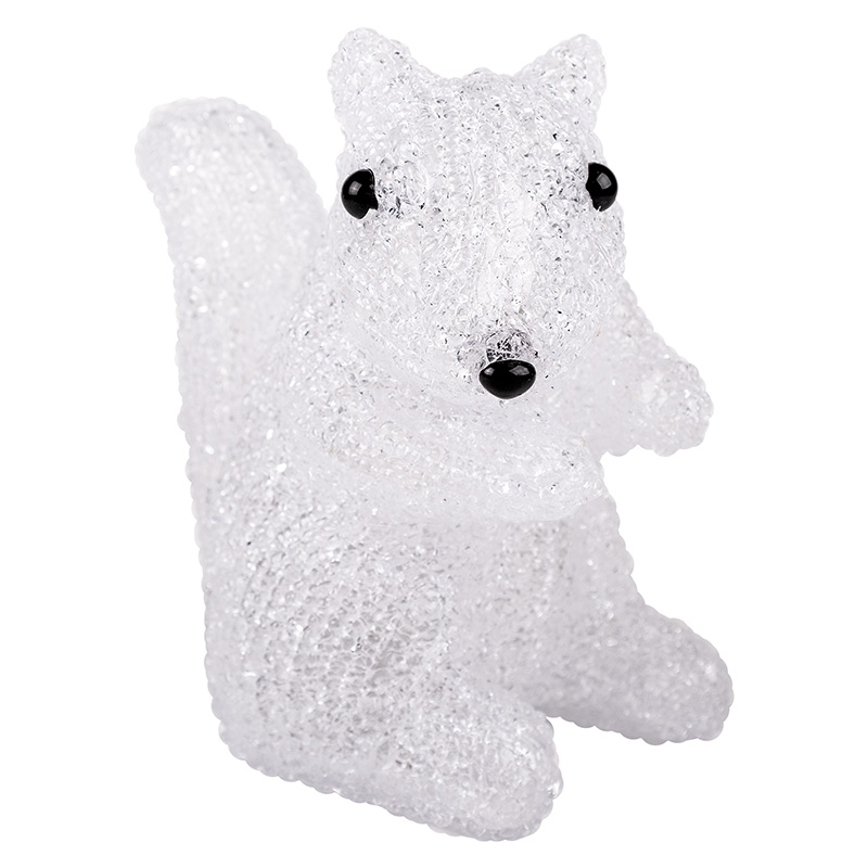 Акриловая светодиодная фигура «Белка» 18 см гармонично дополнит декор детской, гостиной, спальни, кухни, станет оригинальным украшением фотозоны, витрины магазина или кафе. Изделие получает питание от 3 батареек типа ААА, которые устанавливаются в аккумуляторный блок в нижней части конструкции. Корпус из фактурного акрила удерживается металлическим каркасом. Внутри располагаются 12 ярких белых светодиодов, создающих эффект объемных контуров. Современный прочный материал не вызывает аллергии, поэтому фигура подходит для детских игр.