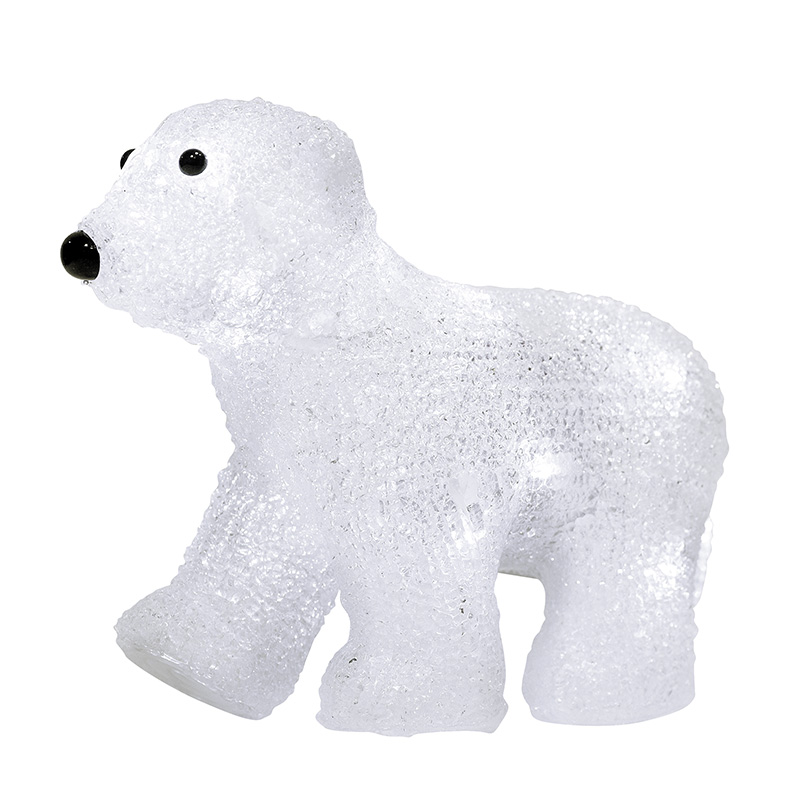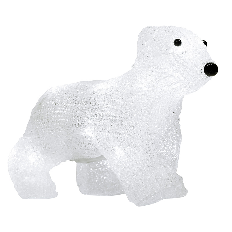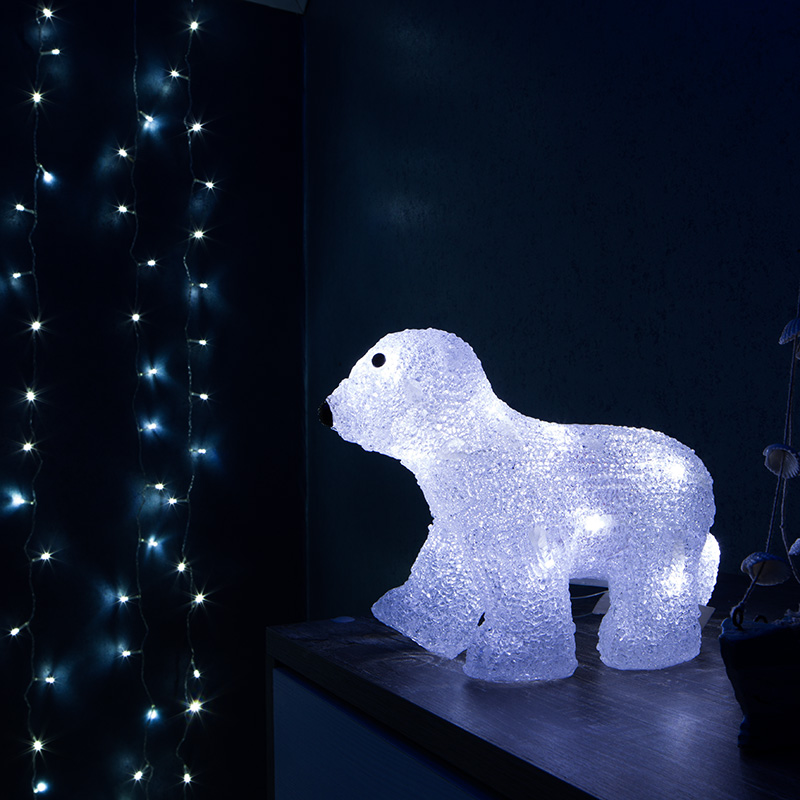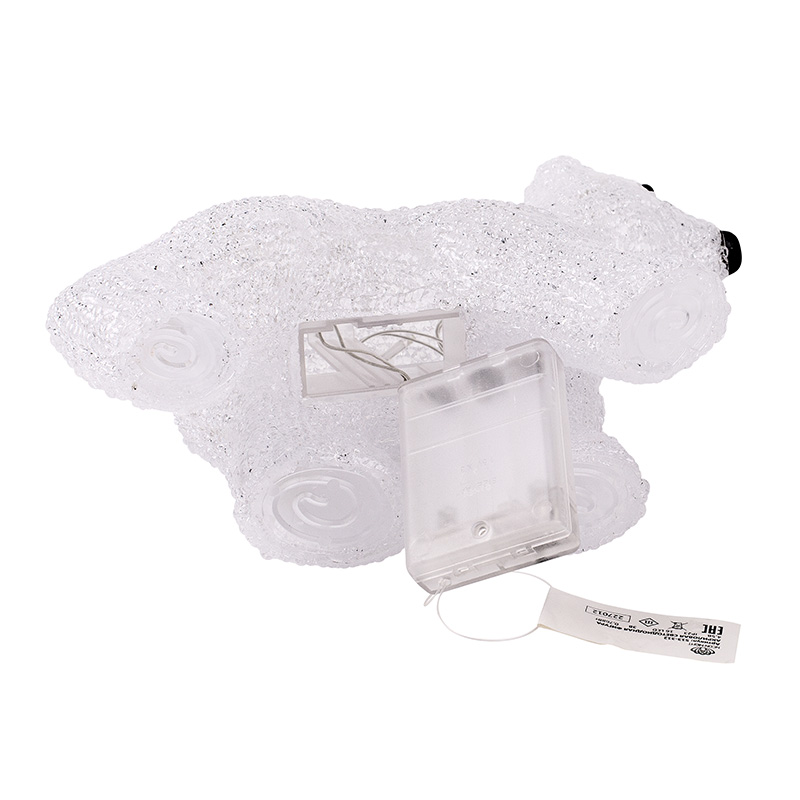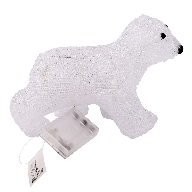 Акриловая светодиодная фигура «Медвежонок» высотой 18 см подсвечивается 16 яркими диодами, которые создают эффект объемного контура и экономно тратят заряд трех батареек типа АА. Элементы питания размещаются в аккумуляторном блоке в нижней части фигуры, рядом находится кнопка ON/OFF для управления подсветкой. Светодиодная фигура с защитой IP20 предназначена для использования в интерьере и в сухих отапливаемых помещениях. Декоративная фигура на батарейках полностью безопасна и отлично подходит для оформления гостиной, спальни, кухни, детской комнаты.