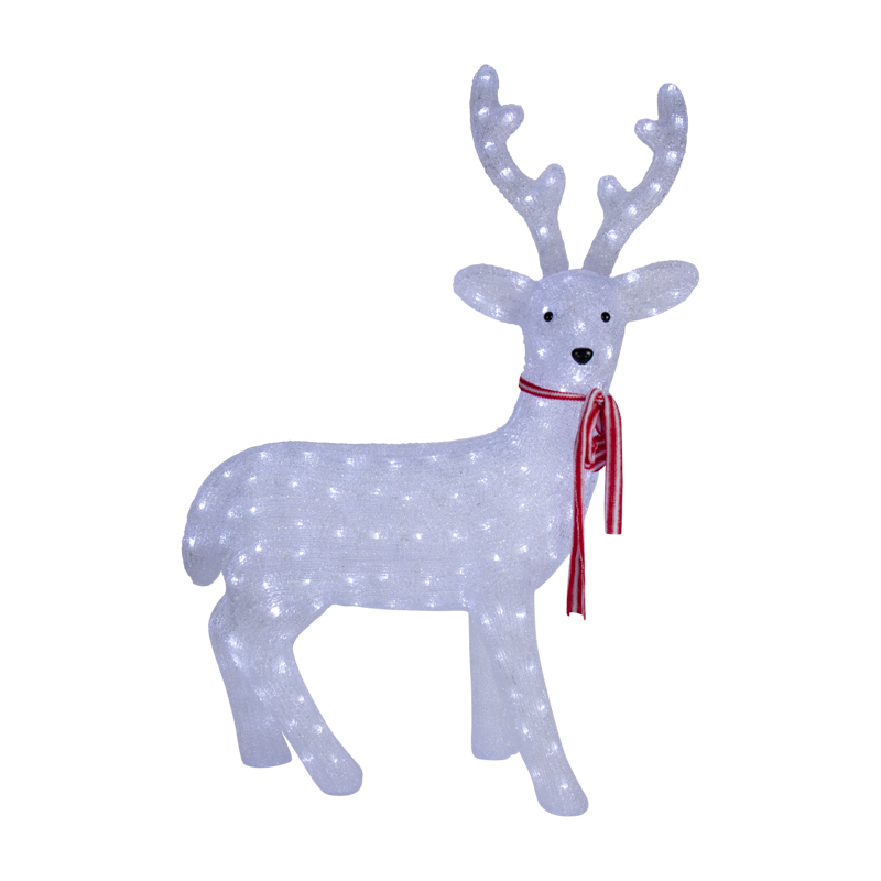 Акриловая светодиодная фигура "Северный олень" высотой 95 см, светящаяся более чем 400 ярких диодов, выполнена по специальной технологии нанесения акрила имитируя шерстяной покров реального животного. Она позволит Вам создать ту самую, настоящую новогоднюю атмосферу и принести сотни радостных улыбок.