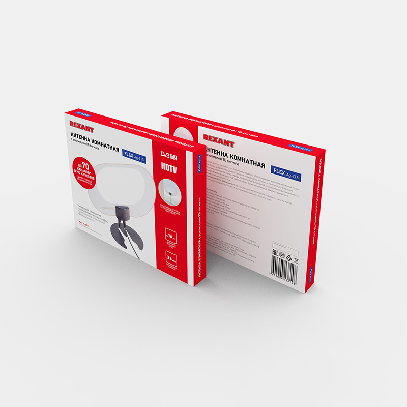 Активная антенна REXANT используется для приема цифрового эфирного вещания на современных телевизорах или комбинированных ресиверах, укомплектованных тюнером стандарта DVB-T2. Предназначена для комнатной установки.