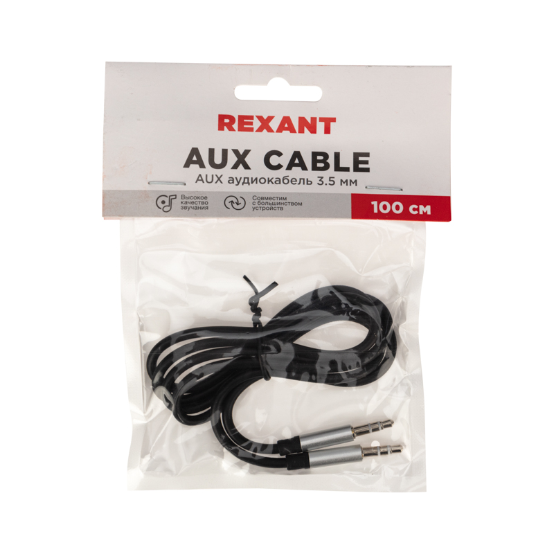 Аудиокабель AUX 3,5мм, 1м, черный REXANT