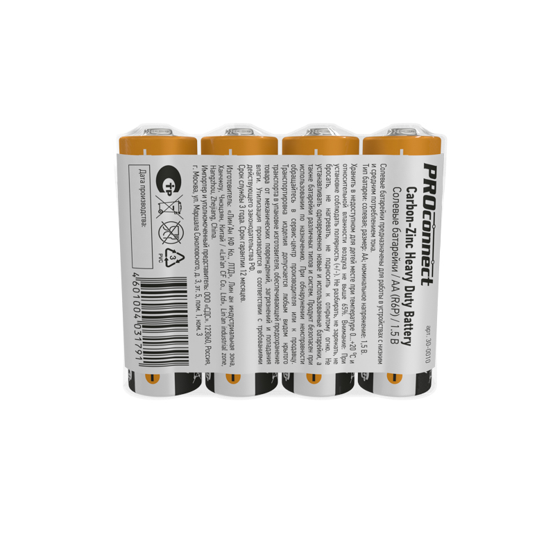 Солевые батарейки PROconnect предназначены для работы в устройствах с низким и средним потреблением тока. Представляют собой надежные, доступные источники питания с длительным сроком службы.