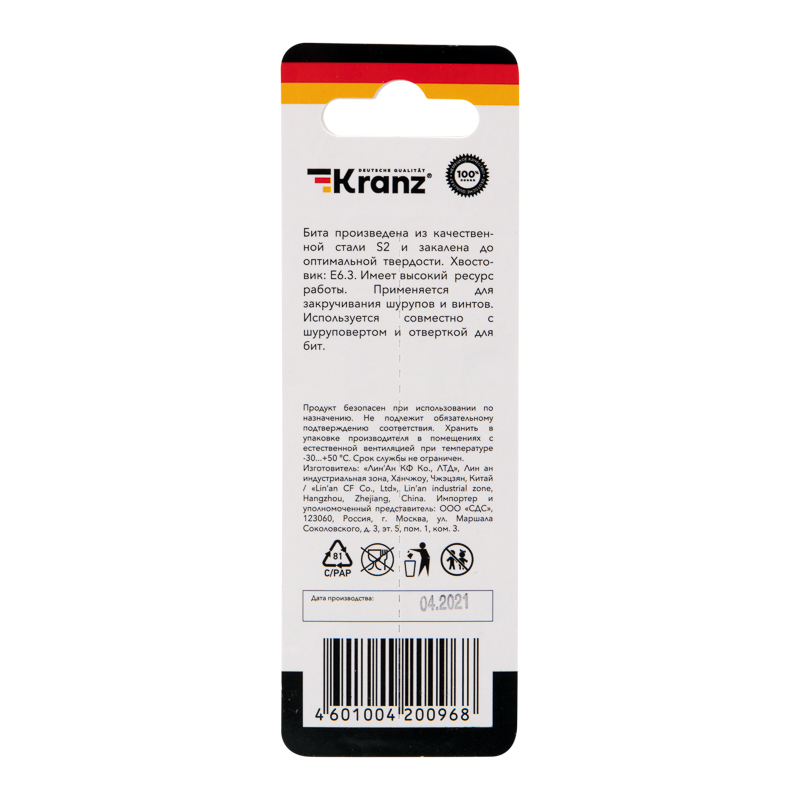Бита для шуруповерта PH2х90 мм (1 шт./уп.) Kranz