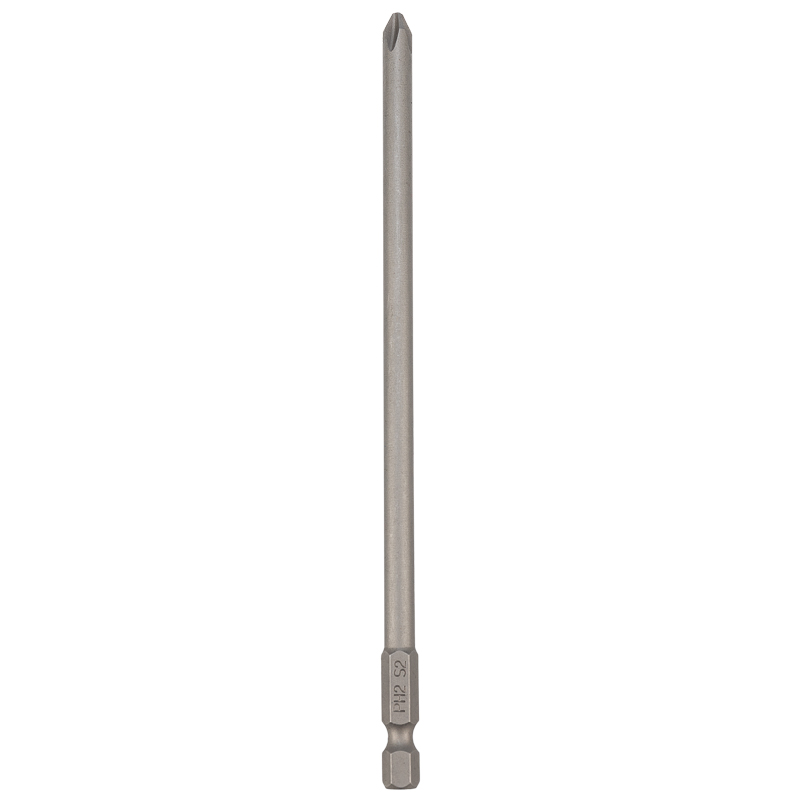 Изготовлена из легированной высокопрочной стали S2, что дает повышенную устойчивость к изломам и деформации в наиболее нагружаемых точках касания. Длина стержня позволяет достать до шлицев в труднодоступных местах. Размер наконечника PH2 подходит для работы со шлицами с резьбовым диаметром 3,1 – 5 мм. Намагниченный наконечник облегчает крепление и фиксацию крепежа на бите. Шестигранный хвостовик надежно фиксирует биту в патроне инструмента и не дает ей проворачиваться.