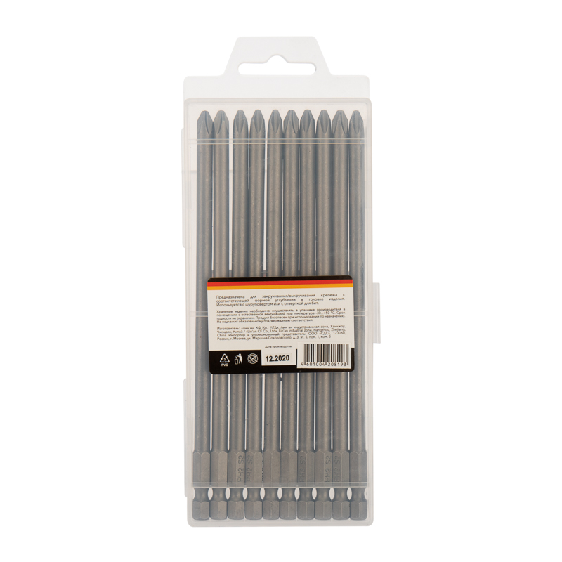 Благодаря хвостовику такая бита подойдет для установки на все виды шуруповертов и отверток-адаптеров. Удобная пластиковая групповая упаковка по 10 шт. обеспечивает удобство и дополнительную выгоду при отпуске товара по 1 шт.