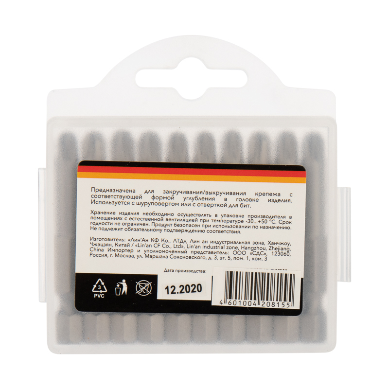 Благодаря хвостовику такая бита подойдет для установки на все виды шуруповертов и отверток-адаптеров. Удобная пластиковая групповая упаковка по 10 шт. обеспечивает удобство и дополнительную выгоду при отпуске товара по 1 шт.