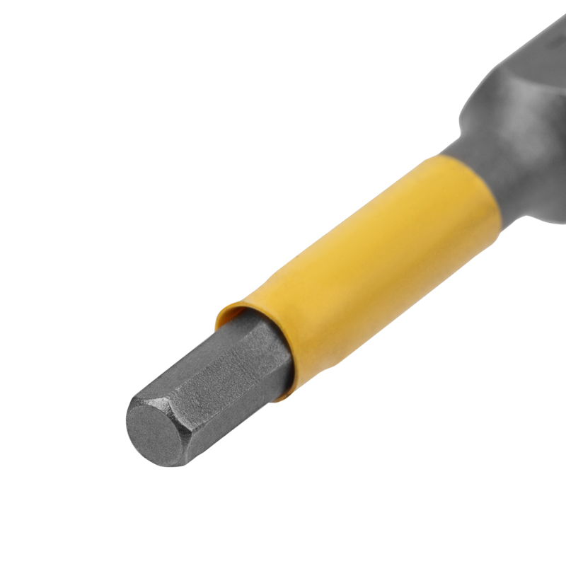 Изготовлена из легированной высокопрочной стали S2, что дает повышенную устойчивость к изломам и деформации в наиболее нагружаемых точках касания. Размер наконечника HEX-3 подходит для работы со шлицами с резьбовым диаметром 3 мм. Намагниченный наконечник облегчает крепление и фиксацию крепежа на бите. Шестигранный хвостовик надежно фиксирует биту в патроне инструмента и не дает ей проворачиваться.