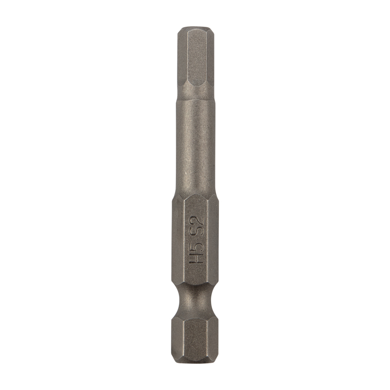 Изготовлена из легированной высокопрочной стали S2, что дает повышенную устойчивость к изломам и деформации в наиболее нагружаемых точках касания. Размер наконечника HEX-5 подходит для работы со шлицами с резьбовым диаметром 5 мм. Намагниченный наконечник облегчает крепление и фиксацию крепежа на бите. Шестигранный хвостовик надежно фиксирует биту в патроне инструмента и не дает ей проворачиваться.