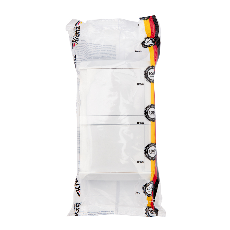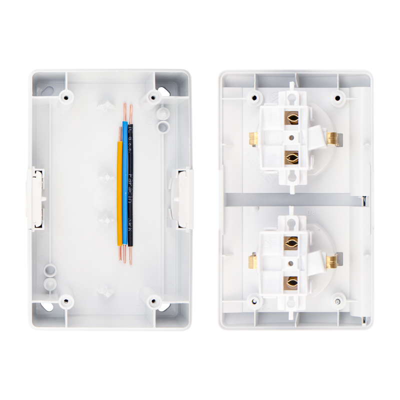 Накладной горизонтальный блок из двух розеток предназначен для организации электроснабжения. Подходит для установки в сухом помещении, а также во влажной и пыльной среде.