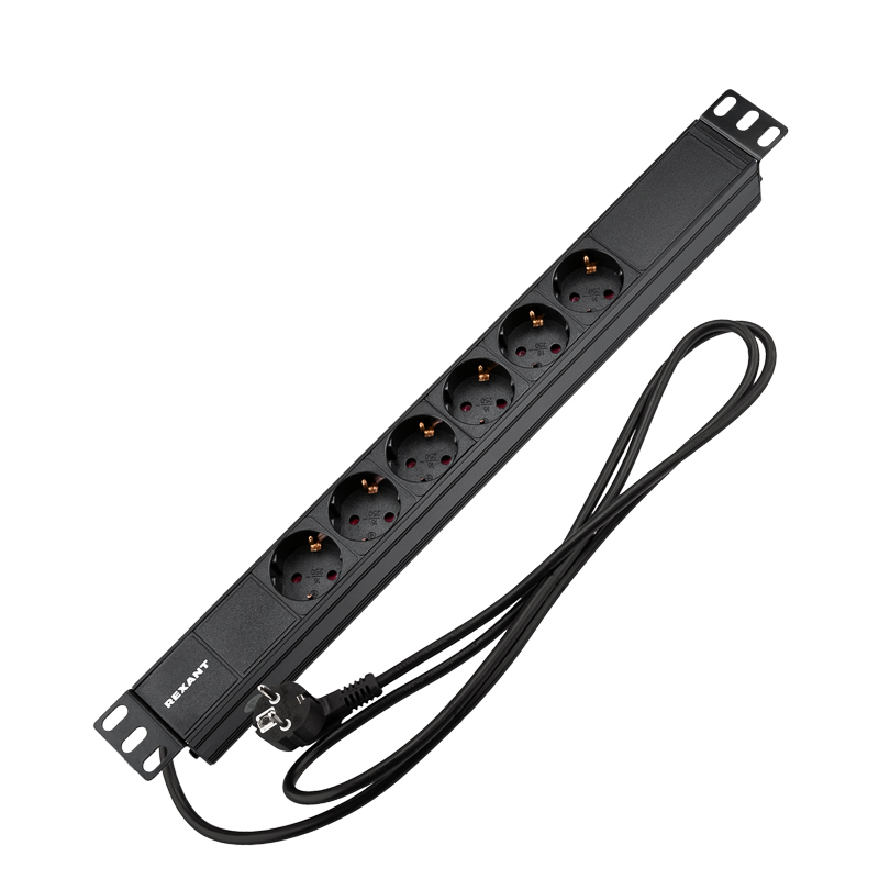 Блок распределения питания для 19" шкафов, горизонтальный, 6 розеток СЕЕ 7/4, 16A, без выкл, алюм корп, шнур 2м, вилка СЕЕ 7/7 REXANT