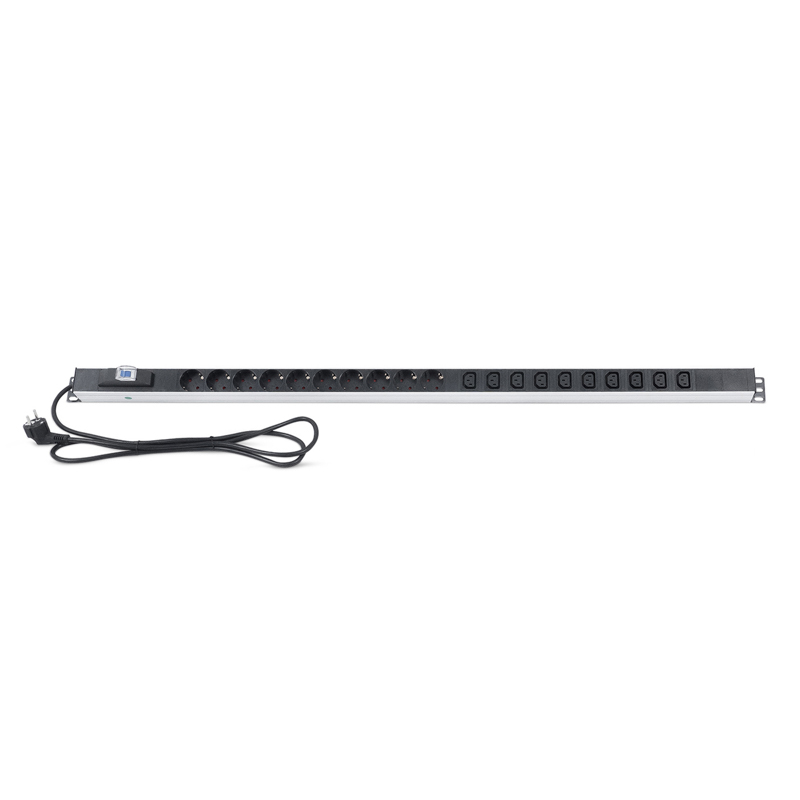 Блок распределения питания для 19" шкафов, верт, 10 розеток СЕЕ 7/4, 10 розеток C13, 16А, автомат защиты, алюм корп, шнур 2м, вилка СЕЕ 7/7 REXANT