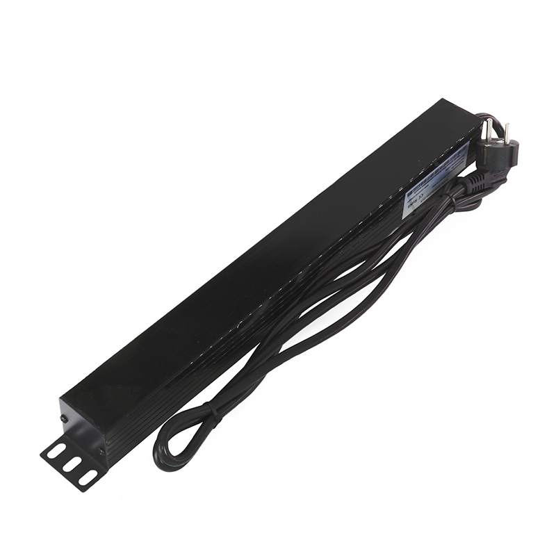 Блок розеток горизонтальный 19” обеспечивает электропитанием активное сетевое оборудование, расположенное в шкафах и стойках. Оснащен 8 гнездами.