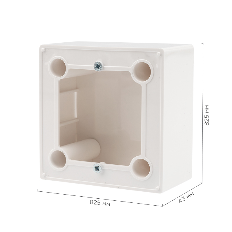 Благодаря компактному размеру легко монтируется на стену. Имеет грубину 43 мм. Он предназначен для установки выключателей, розеток, светильников и других электроустановочных изделий.