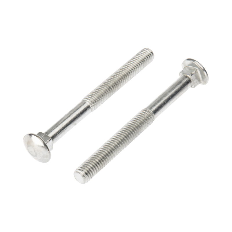 Болты изготовлены из стали с гальваническим цинковым покрытием, которое защищает изделия от коррозии и механических повреждений. Квадратный подголовник предотвращает проворачивание болта в отверстии, а сферическая головка увеличенного диаметра не повреждает поверхность основания и придает аккуратный и эстетичный вид изделию.