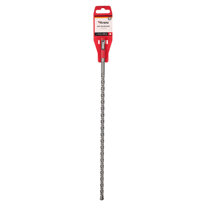 Бур по бетону с хвостовиком SDS PLUS 10x400 мм KRANZ используется во время строительных и ремонтных работ. Предназначен для сверления и бурения отверстий в слабоармированном бетоне, граните, кирпичной кладке и камне при помощи перфоратора с креплением SDS PLUS, которое используется в большинстве электроинструментов бытового и профессионального назначения. Изделие выполнено из качественной стали, что обеспечивает долгий ресурс работы и высокую производительность. Конструкция со стабилизирующей спиралью сохраняет точное положение бура во время сверления и равномерно распределяет ударную нагрузку, кромки с 2 гранями обеспечивают легкое выведение шлама и мелких частиц пыли из рабочей зоны, что поддерживает скорость работы, а усиленный резец предотвращает заклинивание оснастки в арматуре. Твердосплавная вставка на конце бура способствует эффективному входу в материал, что увеличивает цикл службы оснастки и уменьшает износ сверла.