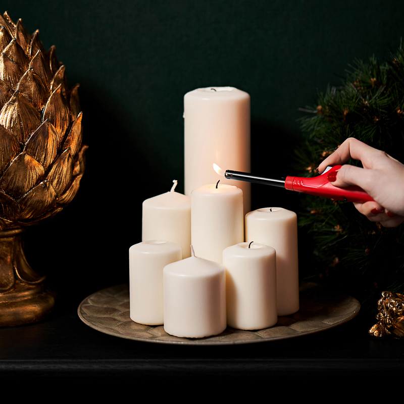 Бытовая пьезозажигалка с классическим пламенем, c держателем.