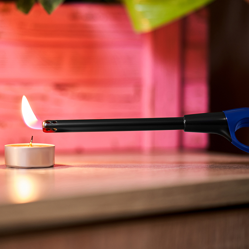 Бытовая газовая пьезозажигалка с классическим пламенем.