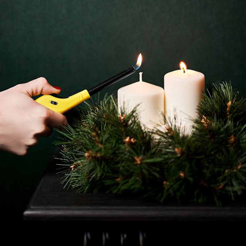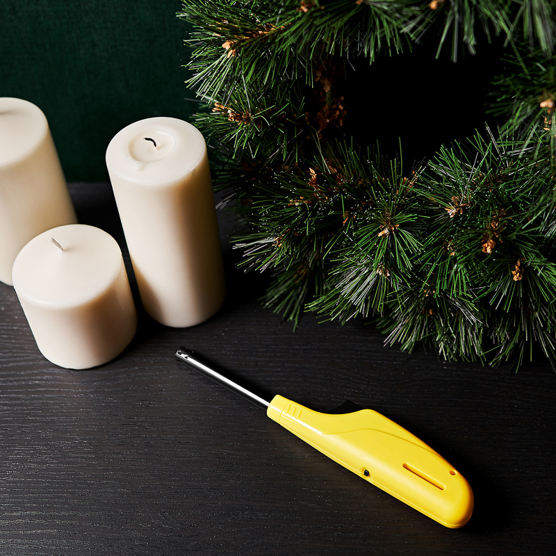 Бытовая пьезозажигалка с классическим пламенем, c держателем.