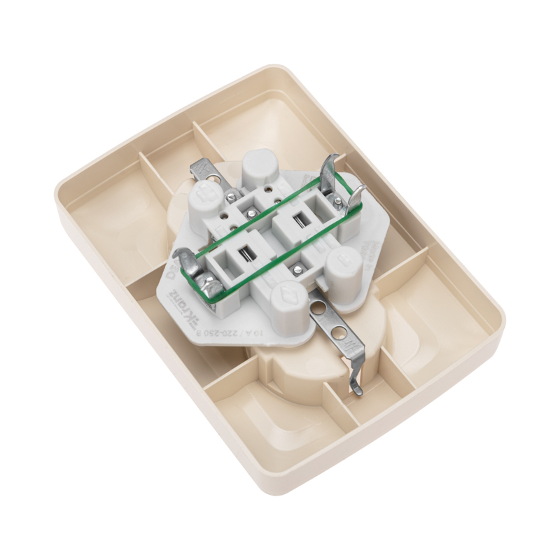 Корпус механизма розетки изготовлен из термостойкой керамики, которая обладает хорошими изоляционными свойствами. Имеет контакт заземления, который обеспечивает безопасность присоединяемых устройств.
