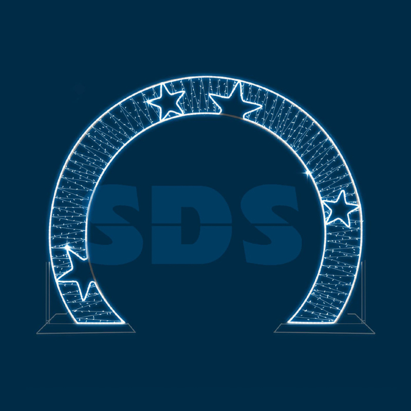 Каркасные плоские LED арки создают праздничную атмосферу на городских улицах и площадях, в парках и скверах, на бульварах и аллеях. Конструкция состоит из алюминия, который не ржавеет. Гирлянды на резиновом проводе обладают долгим сроком службы, их степень защиты составляет 65 IP, они абсолютно безопасны для людей, т.к. имеют напряжение 24 Вольта. Яркая и красочная фигура будет радовать прохожих своей оригинальностью, может выступать в качестве необычной фотозоны.