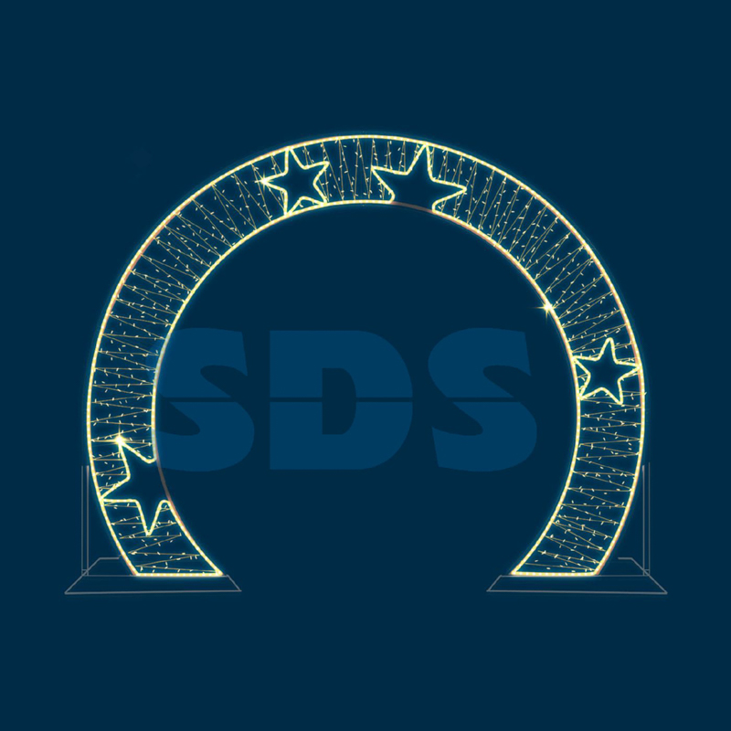 Каркасные плоские LED арки создают праздничную атмосферу на городских улицах и площадях, в парках и скверах, на бульварах и аллеях. Конструкция состоит из алюминия, который не ржавеет. Гирлянды на резиновом проводе обладают долгим сроком службы, их степень защиты составляет 65 IP, они абсолютно безопасны для людей, т.к. имеют напряжение 24 Вольта. Яркая и красочная фигура будет радовать прохожих своей оригинальностью, может выступать в качестве необычной фотозоны.