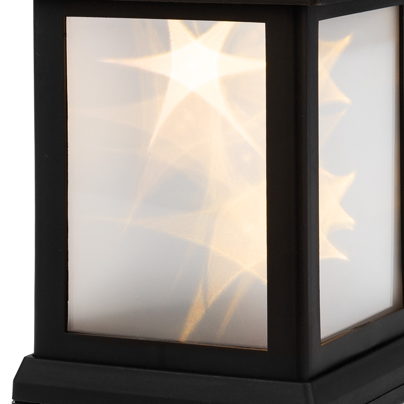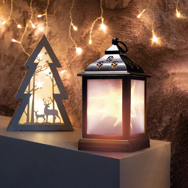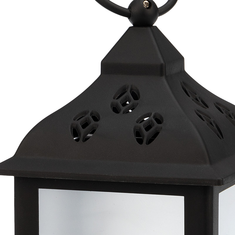 Декоративный фонарь с эффектом мерцания — оригинальное и, главное, безопасное украшение интерьера, которое имитирует веселую россыпь сверкающих огней, заключенных в стеклянную колбу. Корпус черного цвета выполнен в стиле старинного подвесного фонаря. За подсветку отвечает 10 диодов. Современные светодиоды не нагреваются, экономно расходуют заряд 3 батареек типа АА и стабильно работают при температуре в помещениях с естественной влажностью. На корпусе предусмотрена кнопка ON/OFF.
