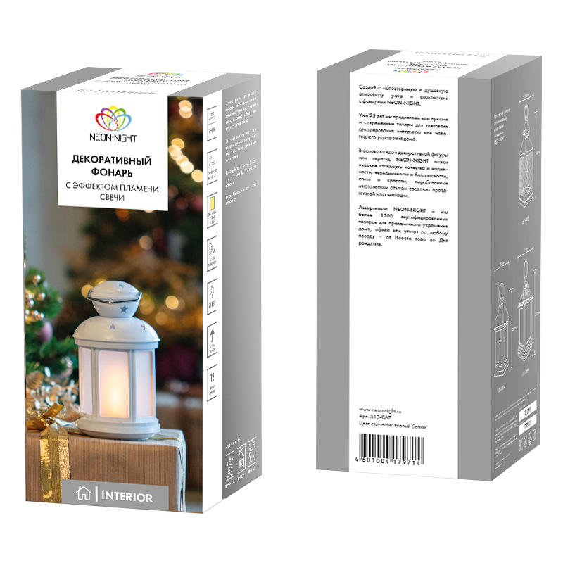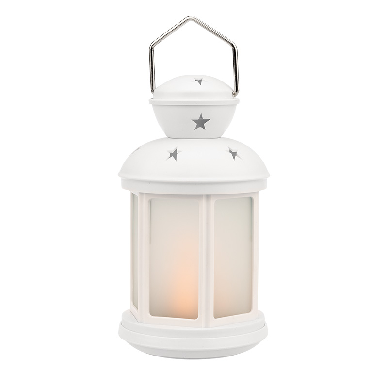 Декоративный фонарь с эффектом пламени свечи отличается стильным оформлением и необычным дизайном: свечка помещена в классический корпус белого цвета. Стекла с матовой поверхностью мягко рассеивают яркий поток, создавая комфортное для глаз свечение. Для подвешивания предусмотрено кольцо. За подсветку отвечает 21 белый диод, который экономно расходует заряд 2 батареек типа АА. Отсек для элементов питания находится в нижней части корпуса и надежно закрывается крышкой. Кнопка ON/OFF включает и выключает свечение.