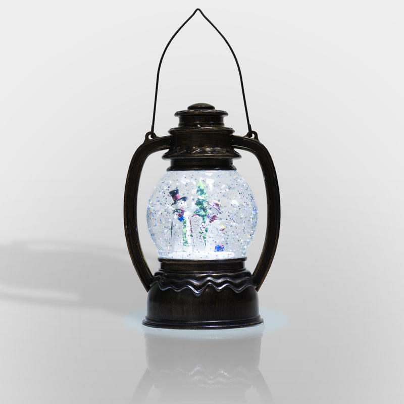 Декоративный фонарь «Снеговики» — это поистине праздничное интерьерное украшение, которое поможет в полной мере ощутить атмосферу Нового года благодаря подсветке и оригинальному эффекту снегопада. Высота изделия —20 см. Внутри колбы находятся красивые фигурки снеговиков и елки. Вьюга, создаваемая вихрем блесток, подсвечивается белыми диодами. Фонарь работает от 4 батареек типа ААА, что делает его мобильным и дает возможность оформить любой уголок вашего дома. Альтернативный способ питания — через USB-кабель. Декоративный фонарь — прекрасный подарок к празднику.