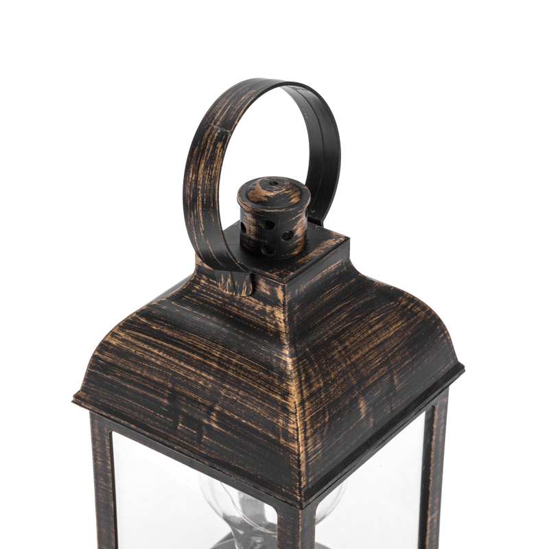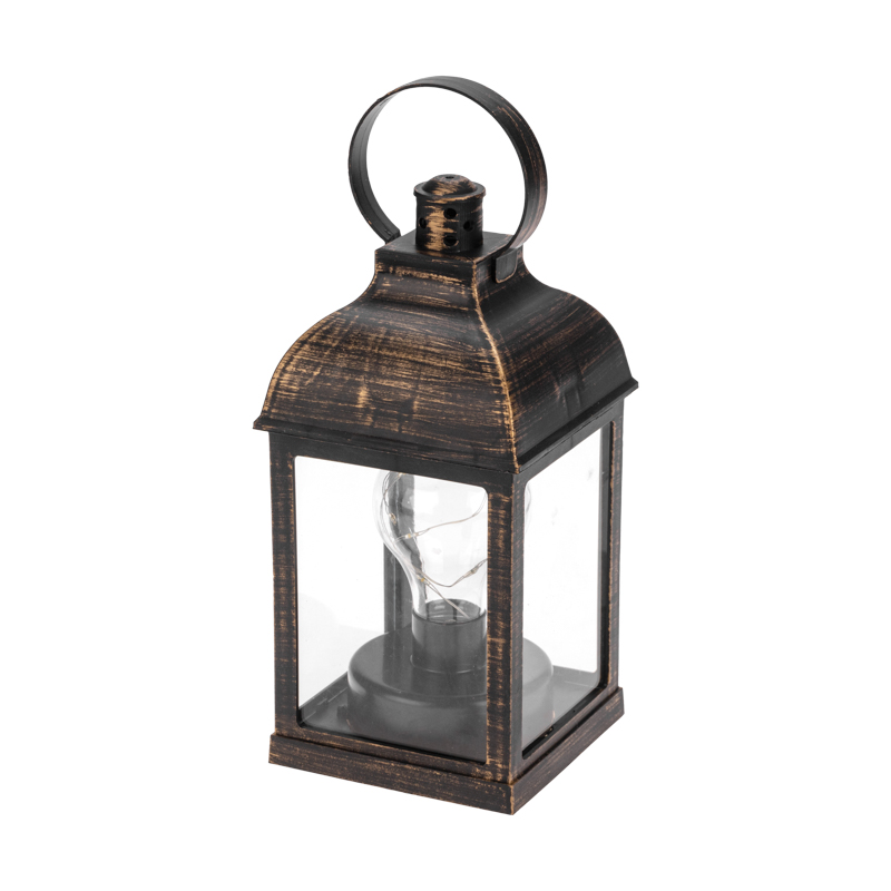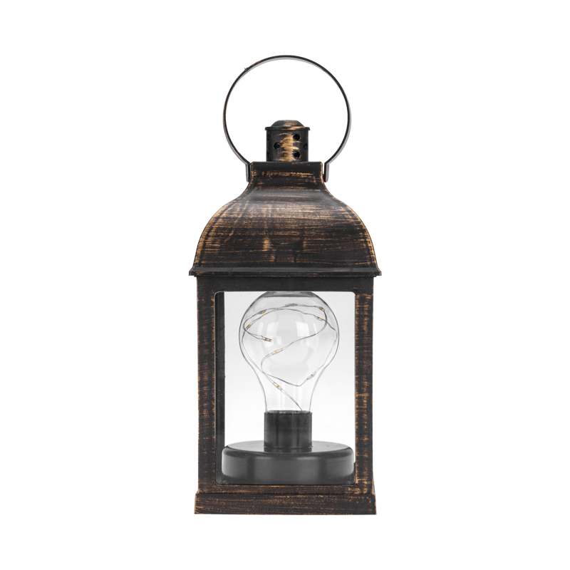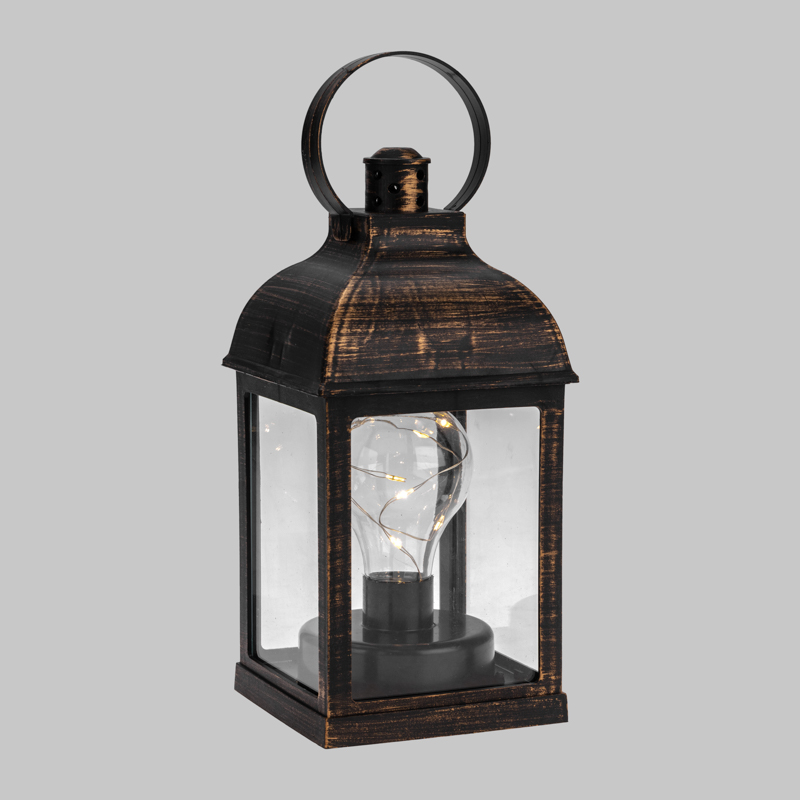 Декоративный фонарь с лампочкой — стильное, оригинальное интерьерное украшение, которое выгодно подчеркнет уникальный стиль обстановки и создаст уют. В бронзовом корпусе находится декоративный элемент в виде лампы накаливания, но вместо вольфрамовой спирали за подсветку отвечают светодиоды, излучающие белый свет теплого оттенка. Светодиоды получает питание от 3 батареек типа ААА и экономно расходуют заряд. Фонарь имитирует работу настоящей лампочки, даря тепло и комфорт окружающим.