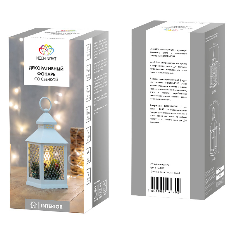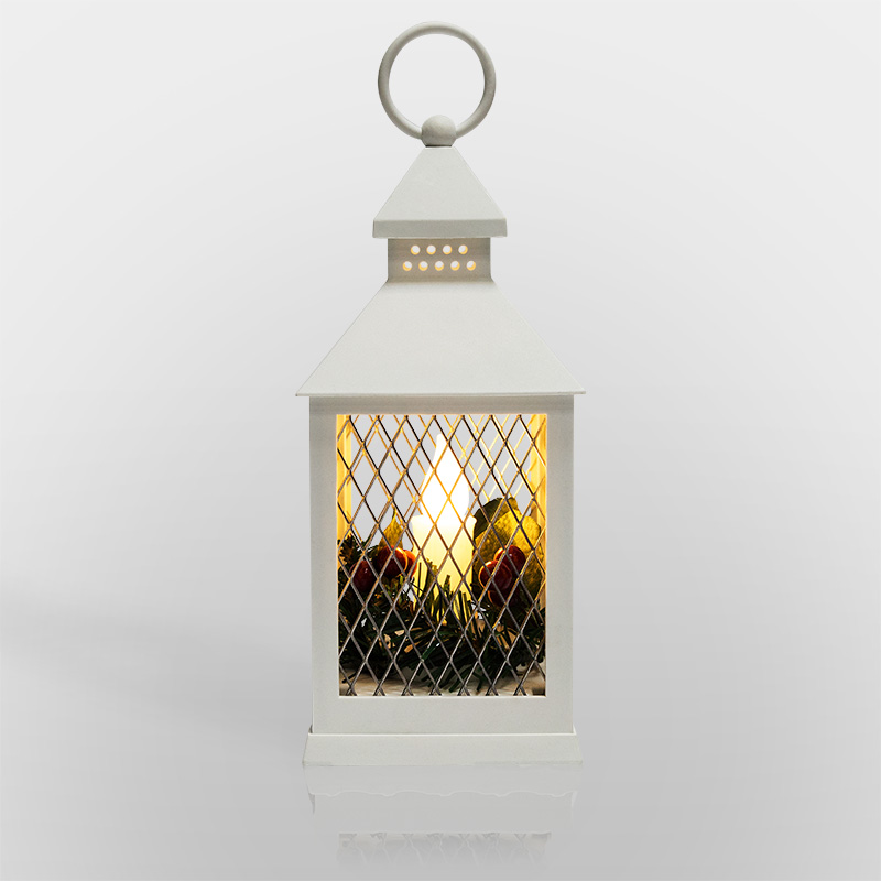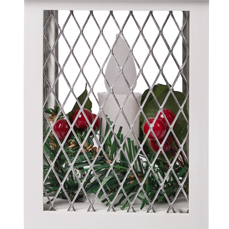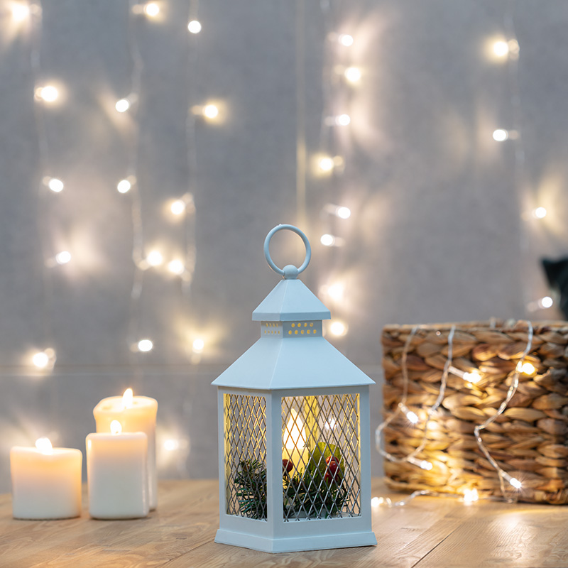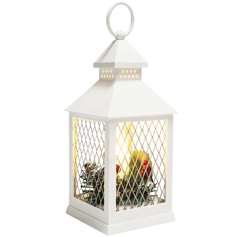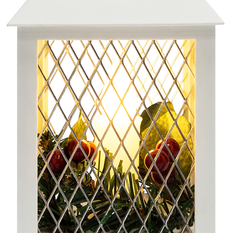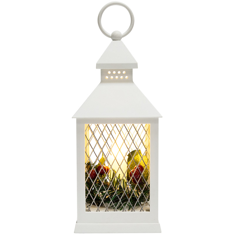 Декоративный фонарь со свечкой — эффектное украшение, которое символизирует Рождество и Новый год, поэтому станет запоминающимся подарком к празднику. В белом корпусе находится оригинальная композиция с искусственными ветками ели и ягодами остролиста. А главный компонент — свеча, внутри которой спрятан 1 диод, излучающий теплый белый свет. Декоративный фонарь работает от 3 батареек типа ААА, включается и выключается при помощи кнопки на корпусе. Изделие предназначено для использования в интерьере.