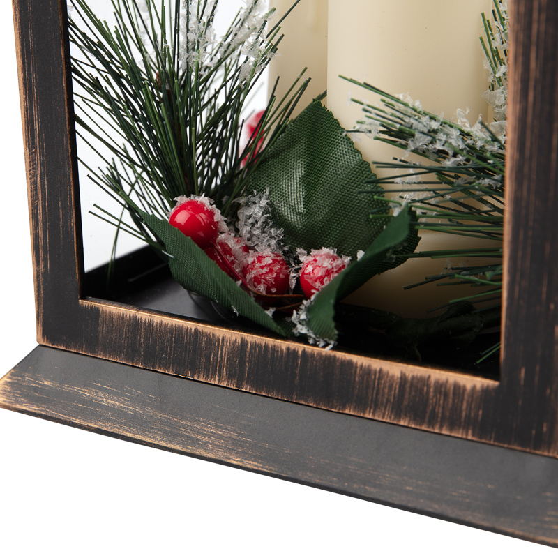Декоративный фонарь со свечками символизирует уют и домашнее тепло. Изделие станет прекрасным украшением праздничного и повседневного интерьера, подарит ощущение комфорта в зимний вечер. Главное преимущество светодиодного фонаря – безопасность использования: светодиод не нагревается – не может повредить окружающие предметы и нанести ожоги при прикосновении. Фигурка имитирует горение аутентичной свечи, отбрасывая мягкие эффектные тени. Фонарь питается от 3 батареек тип ААА и имеет клавишу ON/OFF.