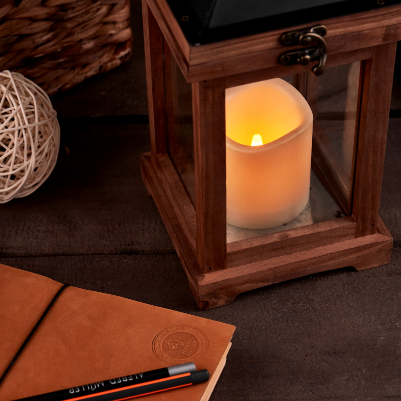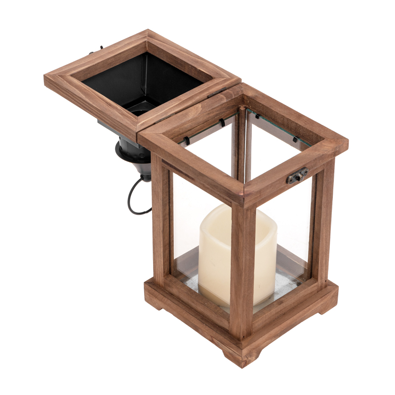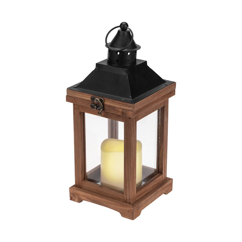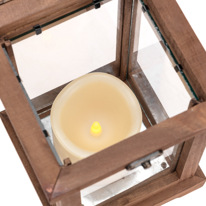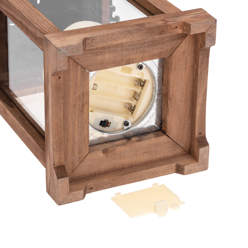 Декоративный элемент подсвечивается одним диодом, имитирующим теплое пламя свечи. Корпус изготовлен из натурального дерева и имеет высоту 35 см. Для размещения в подвешенном виде предусмотрено кольцо.