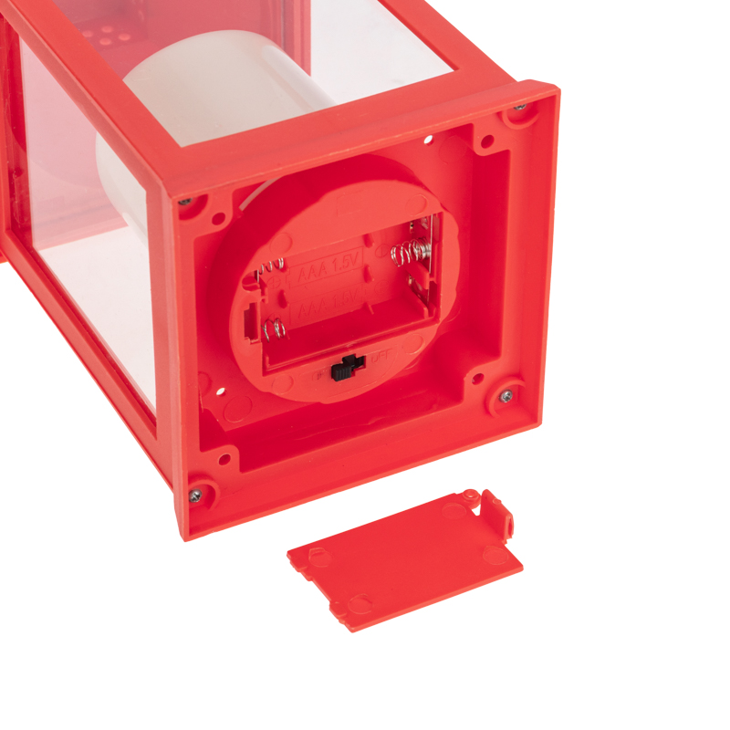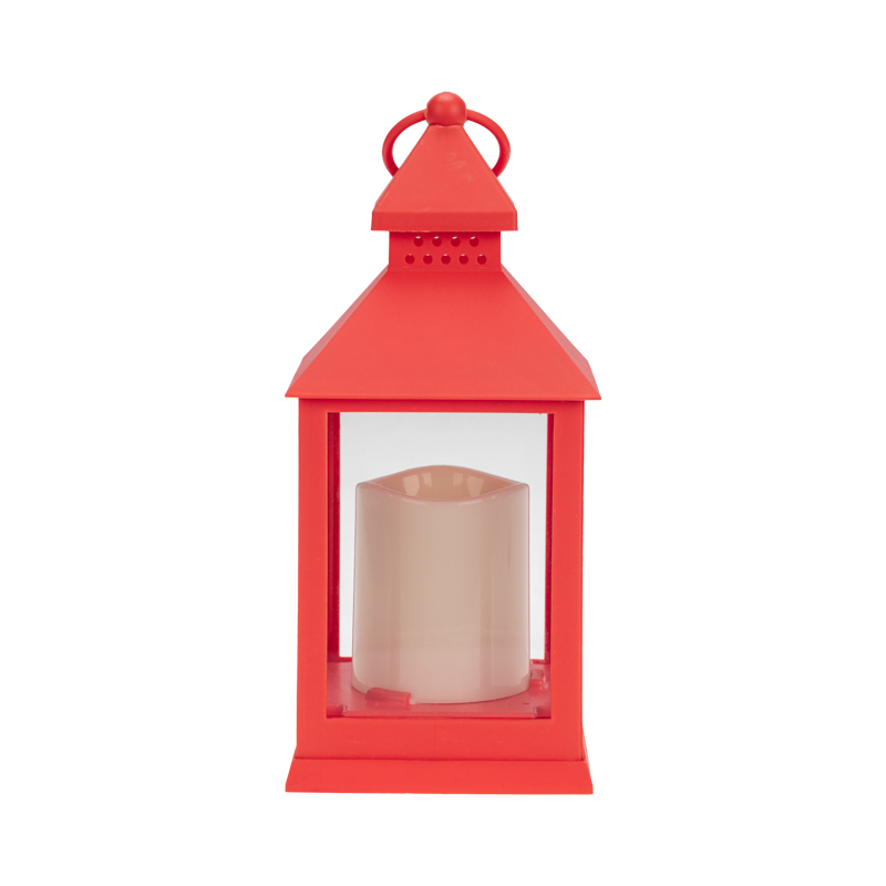 Декоративный элемент подсвечивается одним диодом, имитирующим теплое пламя свечи. Корпус красного цвета имеет высоту 24 см. Для размещения в подвешенном виде предусмотрено кольцо.