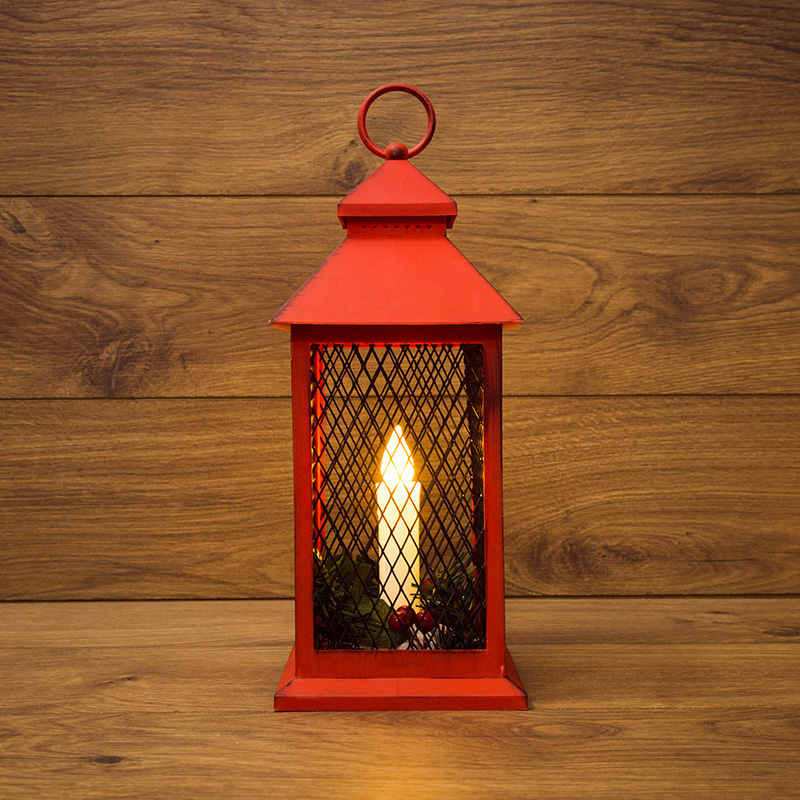 Декоративный фонарь со свечкой символизирует уют и домашнее тепло. Изделие станет прекрасным украшением праздничного и повседневного интерьера, подарит ощущение комфорта в зимний вечер. Главное преимущество светодиодного фонаря — безопасность использования: светодиод не нагревается – не может повредить окружающие предметы и нанести ожоги при прикосновении. Фигурка имитирует горение аутентичной свечи, отбрасывая мягкие эффектные тени. Фонарь питается от 3 батареек типа ААА и имеет клавишу ON/OFF.