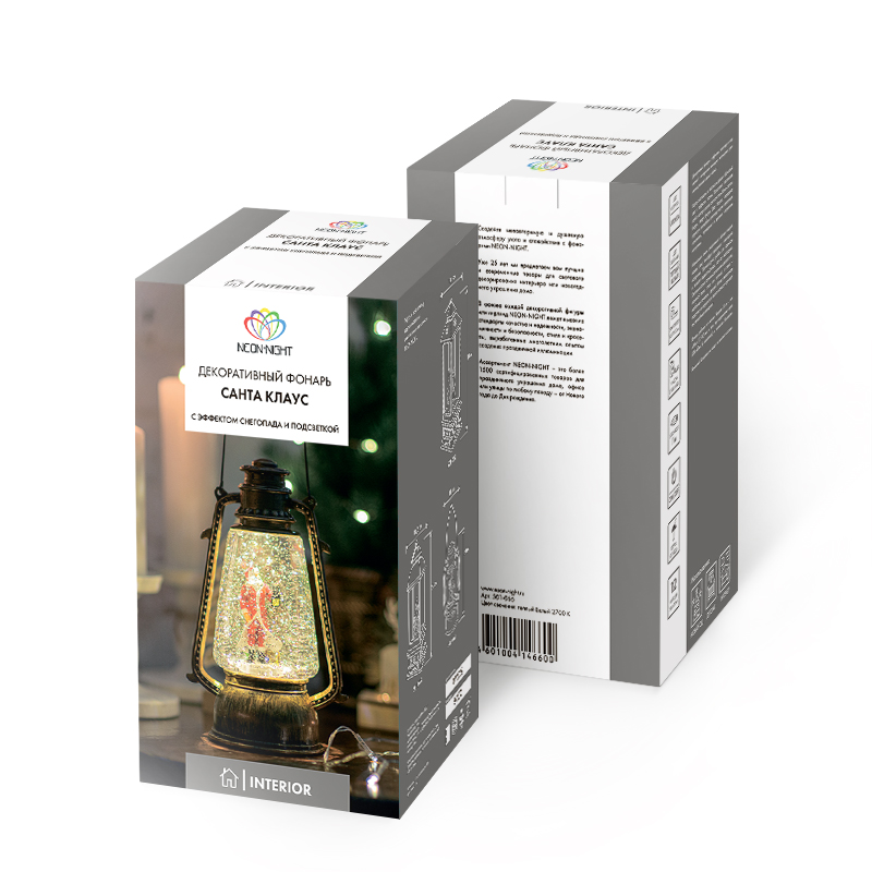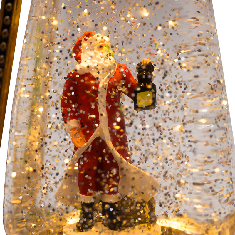 Декоративный фонарь с эффектом снегопада и подсветкой NEON-NIGHT«Санта-Клаус» является оригинальным интерьерным украшением. Корпус светильника выполнен из прочного гипоаллергенного ABS-пластика. Внутри колбы из прозрачного стекла, заполненной специальной жидкостью, размещена декоративная фигурка Санта Клауса. В основании фонаря установлен специальный компрессор: при включении изделия он начинает разгонять жидкость, создавая вихрь золотистых блесток. Композиция подсвечивается 2 долговечными яркими диодами теплого белого оттенка. Фонарь функционирует от 4 батареек типа AAA (не входят в комплект), что обеспечивает его автономность и предоставляет возможность размещать в любом удобном месте. В комплекте предусмотрен USB-кабель для альтернативного подключения. Клавиша ON/OFF расположена на задней стенке корпуса. Если конфетти кружатся недостаточно активно, стоит встряхнуть фонарь: блестки могут забиваться в компрессор и препятствовать нормальному потоку жидкости.