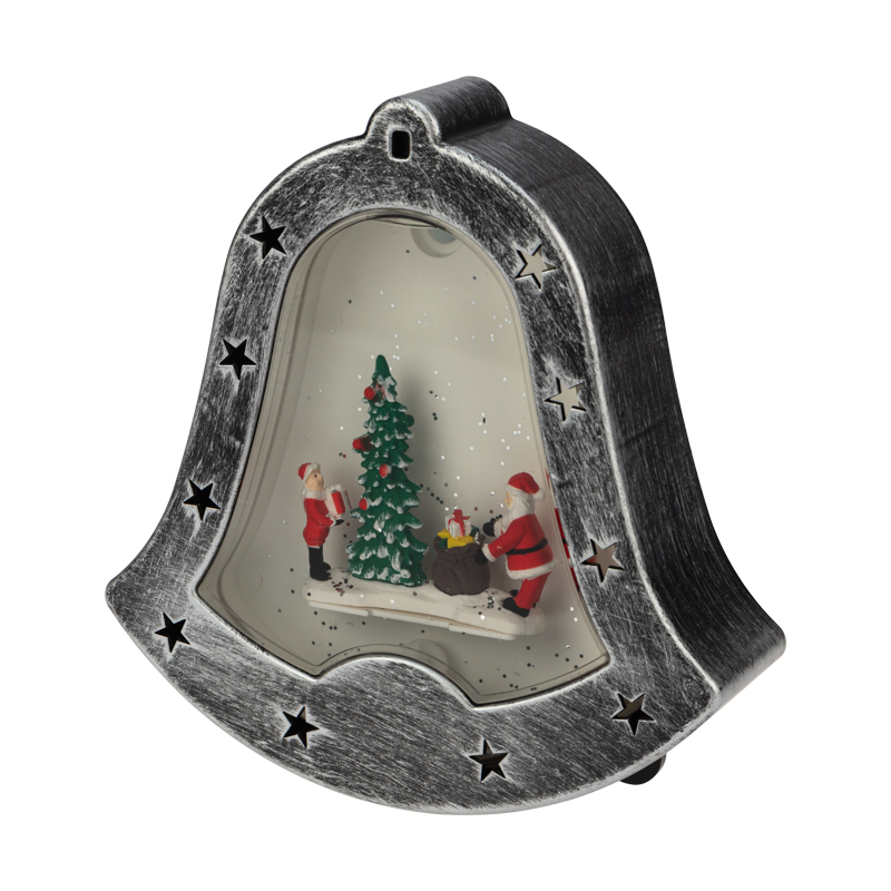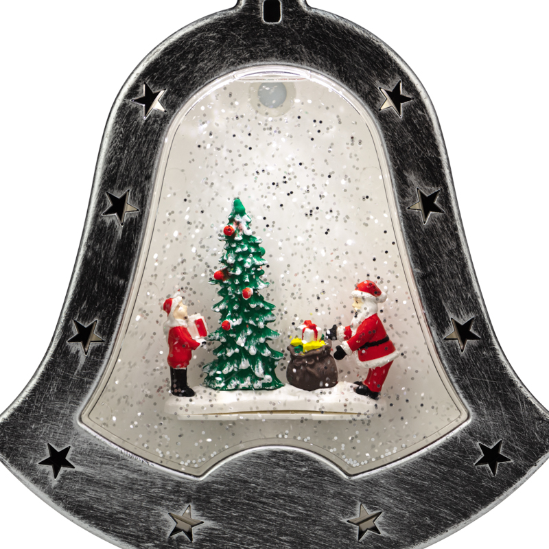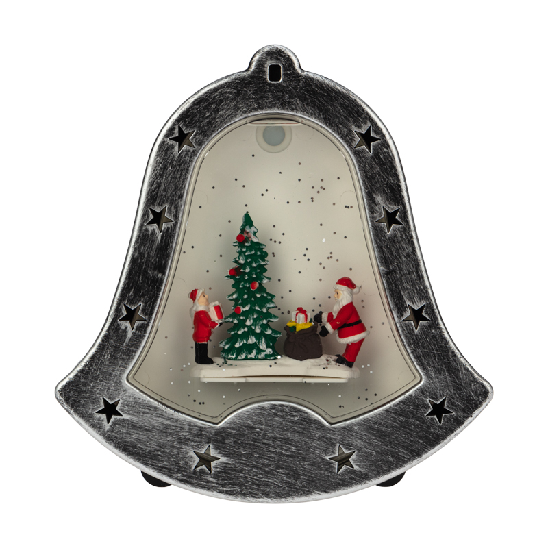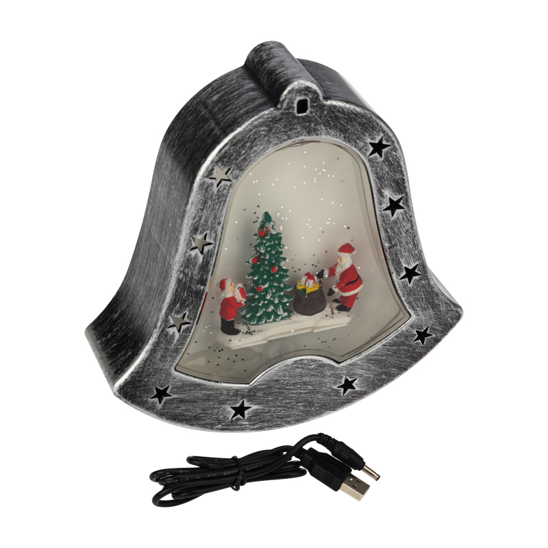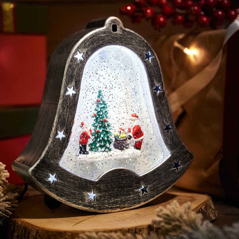 Декоративный светильник «Колокольчик» — необычное интерьерное украшение, которое создано, чтобы подчеркнуть уникальный стиль интерьера и внести атмосферу уюта в ваш дом. 4 диода излучают белый свет нейтрального оттенка и эффектно подсвечивают композицию из фигур, расположенную в центре прозрачной колбы. Вихрь сверкающего конфетти имитирует снегопад, приковывает внимание окружающих и создает праздничное настроение. Фонарь в виде колокольчика питается от 3 батареек типа АА, что дает возможность разместить его в любом удобном месте, где розетка недоступна. USB-кабель входит в комплект.
