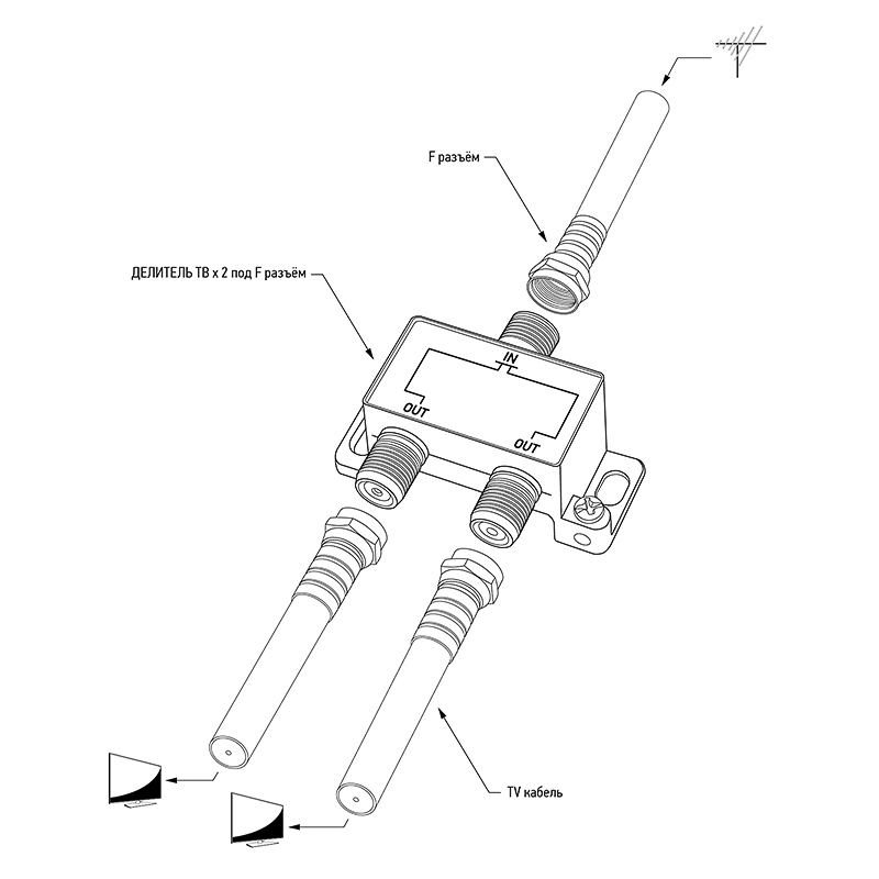 Полоса пропускания делителя от 5 до 1000МГц, что соответствует стандартному эфирному телевидению.