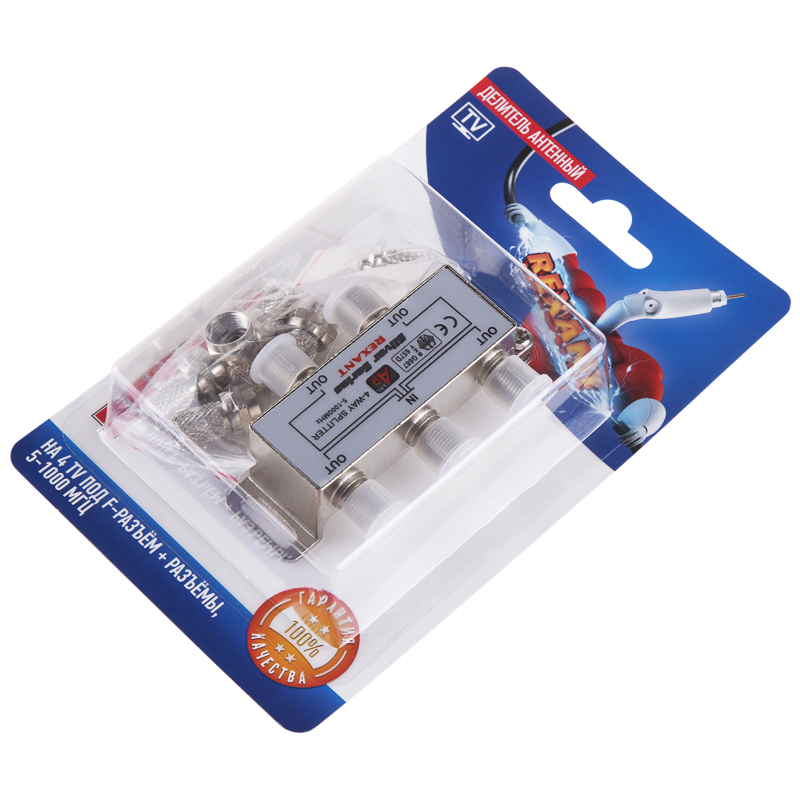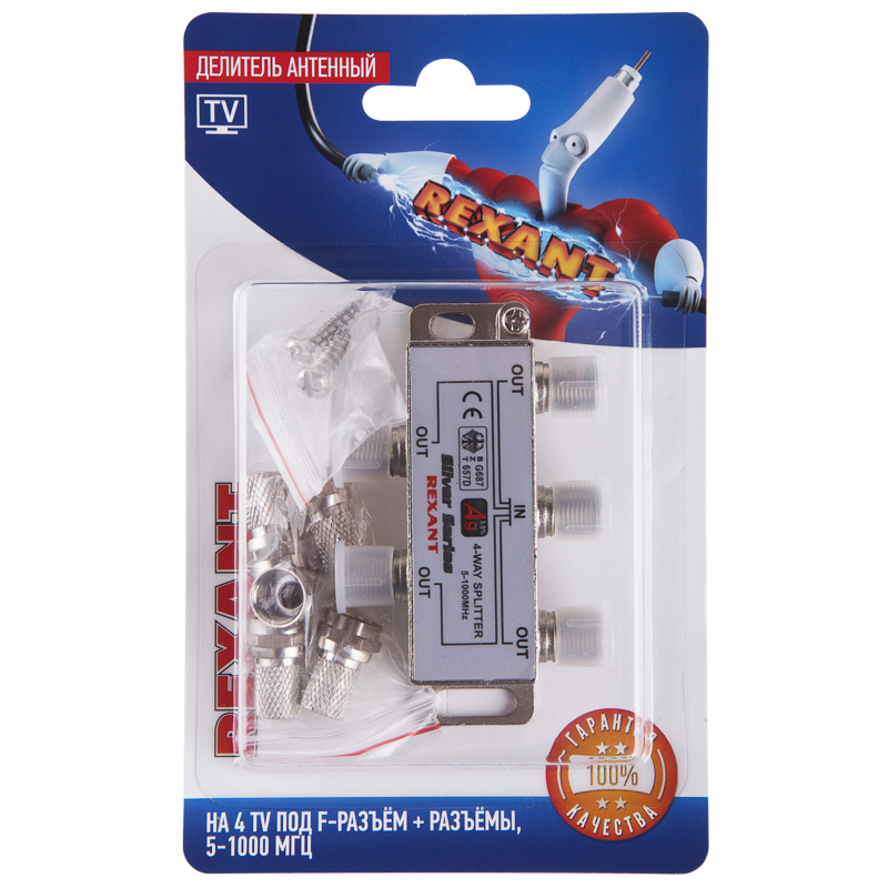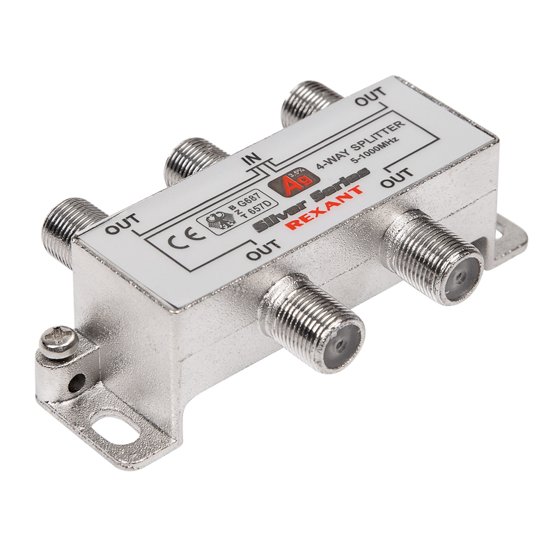 Антенный делитель F-типа на 4 TV REXANT предназначен для телевизионных систем. Используется для подключения нескольких телевизоров к одной антенне. Распределяет поступающий сигнал поровну на четыре выхода, что обеспечивает одинаково четкое изображение на всех подключенных устройствах. Покрыт слоем серебра для улучшения качества передачи сигнала и снижения уровня потерь.