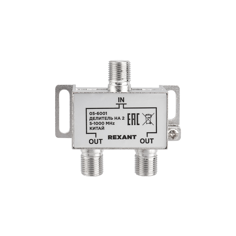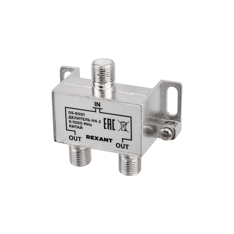 Делитель оснащен одним входом под F разъем и двумя выходами, также под F разъемы.