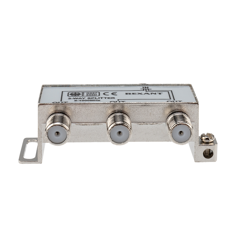 Сигнал, подающийся на вход, делится на три равные части и передается на выходы. Для подключения кабелей используются стандартные F-разъемы.
