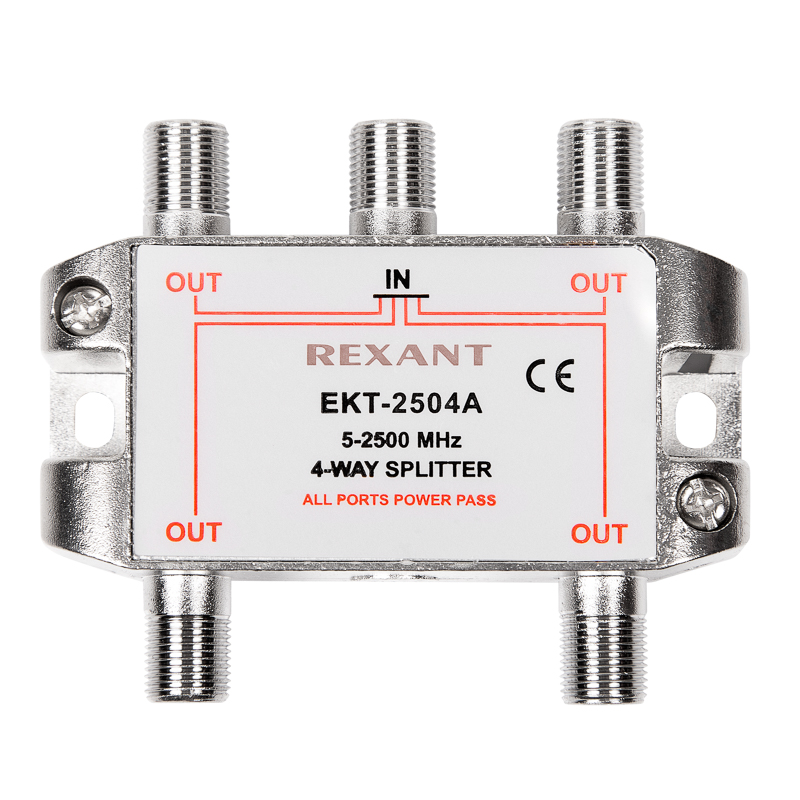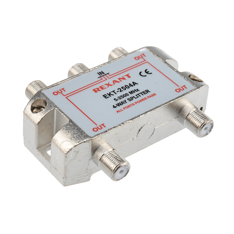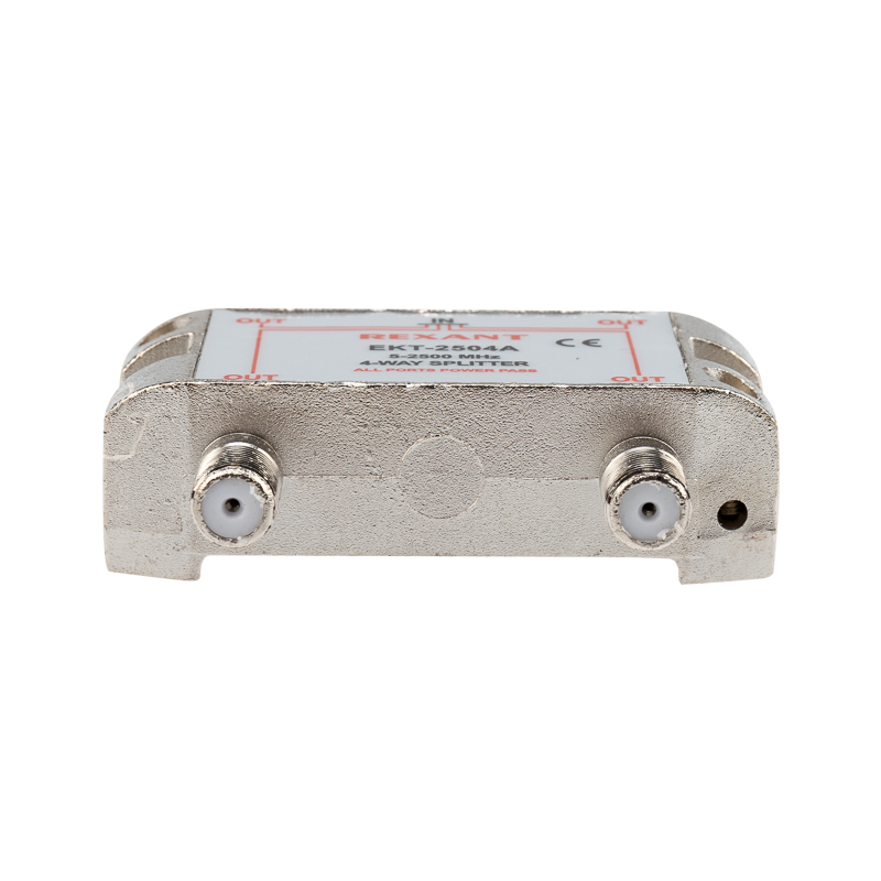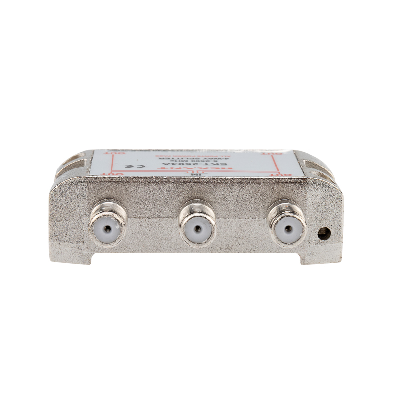 Делитель оснащен одним входом под F разъем и четырьмя выходами, также под F разъемы.
